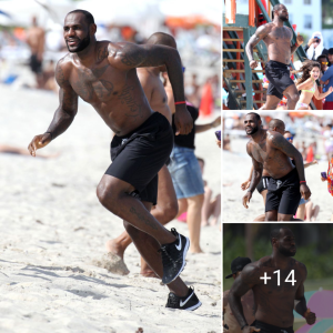 King James continues to maintain his physical fitness by running on the beach, LeBron’s naturally strong and sturdy figure captivates everyone’s gaze