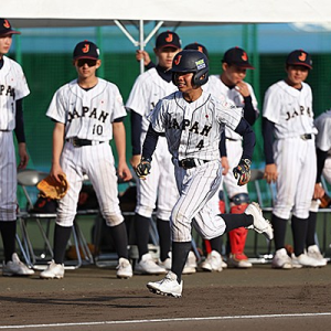 試合レポート 第11回 BFA U12アジア野球選手権 第11回 BFA U12アジア野球選手権 仁志敏久 峰岸走太朗 古畑太誠 インド 11月25日、愛媛県松山市・今治市にて「第11回 BFA U12アジア野球選手権」のオープニングラウンド第3戦が行われ、侍ジャパンU-12代表は松山市の坊っちゃんスタジアムでインドと対戦。22対0の4回コールド勝ちで大勝し、オープニングラウンドを3連勝で首位通過。27日から始まるスーパーラウンドへ進むこととなった。 仁志敏久監督が「打てなかったですね。なかなか子どもたちの集中力を保たせるのが難しかったです」と険しい表情で振り返ったように、相手のミスで加点はできたもののクリーンヒットはそこまで多くなく、韓国とチャイニーズ・タイペイが待つスーパーラウンドを前に気を引き締めた。 試合は初回から得点を重ねた。1死後、ここまでの2試合3打数無安打だった杉浦颯真(保々ジュニヤーズ)に待望の初安打となる左中間への三塁打が飛び出すと、惣宇利銀河(神明サンダーズ)のショートゴロの間に杉浦が先制のホームを踏んだ。その後、古畑太誠(深川ジャイアンツ)、漆崎一輝(ドラゴン中藤スポーツ少年団)、立岩駿(古高松ブルースターズ)、西谷内駿希(松任若体スーパースターズ)、藤原虎之助(深川一已バトルス)、峰岸走太朗(菱・境野フューチャーズ)に安打が生まれ、いきなり6点の先制に成功した。だが2回は無安打で四球と暴投、内野ゴロの間の1点のみに終わった。3回は藤原や古畑の2本のタイムリーや西谷内のタイムリーなどで得点を重ねた。 また、100m走の自己最速が13秒07で、小学5年時に群馬県4位、今年8位に入った峰岸が俊足を飛ばしてランニング本塁打を放つなど、3回裏に一挙15点を奪ってダメ押し。仁志監督が「すごくひたむきで、いつも一生懸命にやる模範的な選手の1人」と姿勢面も高く評価する峰岸は、前日に自ら打撃指導を受けに仁志監督のもとへ。「もともと綺麗なスイングをしているから、もっと振り抜いて打った方がいいんじゃないかと言ってもらいました」と話すように、そこで受けた助言をさっそく形にした。 投手陣は一寸木健翔(西湘シーホース)、石﨑悠士郎(本郷北学童野球クラブ)、福田周吾(IBCレイカーズ)、古畑が1イニングずつを投げて打者12人から11三振を奪い、1人の走者も出さない完全リレー。4回コールドで試合を終わらせた。 これでオープニングラウンドは3試合47得点無失点と圧倒し、スーパーラウンド進出を決めた。一方で仁志監督は前述のように危機感も感じており、夜のミーティング時にはこの日行われたチャイニーズ・タイペイ対韓国(韓国が1対0でサヨナラ勝ち)の試合映像を見てレベルを感じさせるとともに、選手たちに自覚の大切さを説いた。 スーパーラウンドは27日から開始。27日にグループB首位の韓国と、28日に同2位のチャイニーズ・タイペイと、それぞれ14時から松山市の坊っちゃんスタジアムで対戦。上位2チームに与えられる決勝戦進出を目指す(グループAからともに進出した中国との対戦成績は持ち越し、1勝0敗からスーパーラウンドを始める)。 監督・選手コメント 仁志敏久督 「(スーパーラウンドに向けて)オープニングラウンドでは満遍なく選手を起用しました。実力の差はそこまであるわけではないので、スーパーラウンドでは取り組む姿勢やチームに良い影響を与える選手をできるだけ試合に使いたいと思います。また、高いレベルの相手と戦う際の準備をもっとさせていかないといけないと思います。(峰岸のランニング本塁打)昨日“打球が上がらない”と言っていたのですが足も速いので“打ち抜いて、強い打球を打つのが良いんじゃないか”という話をしました。すごくひたむきな選手です」 古畑太誠(深川ジャイアンツ) 「(投打に活躍)自分が打って投げて、チームが勝つことができて良かったです。スーパーラウンドでは強い相手に対しても自信を持って戦いたいです。投打両方で活躍していきたいです」 大会概要 出場選手 大会期間 2024年11月23日~11月29日 オープニングラウンド(グループA)…