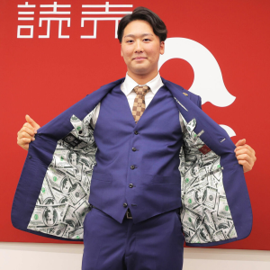 球団史上最年長でセ・リーグ新人王に輝いた巨人・船迫大雅投手(ふなばさま・ひろまさ、28)が4日、都内の球団事務所で契約更改交渉に臨み、3300万円増の5600万円(金額は推定)でサイン。3年目の来季は、球団でマシソン以来9年ぶりとなる最優秀中継ぎのタイトルを狙う決意を示した。 倍増を超える契約に、少しだけ表情を緩めた。3300万円増の5600万円で更改。裏地が紙幣柄のスーツを身にまとい、「まだ満足していないので、もっと上を目指して頑張ります。自分的には10億くらい欲しいですけど、そこは言えないので頑張ります」とユーモアを交えつつ、明確に来季の目標を定めた。 「今年新人王を取ってアワーズという場所が素晴らしい景色だったので、来年もタイトルは目指していきたい。中継ぎとなると限られてくるので、一番は最優秀中継ぎです」 全試合でベンチ入りした今季は51登板4勝0敗22ホールド、防御率2・37。実に131度も肩をつくりながら、火消し役など多くの場面で役割を果たして球団史上最年長で新人王を獲得した。それでも「結果としていい1年と言えますが、個人的な面を見れば完璧な1年ではなかった」と満足はない。巨人で最優秀中継ぎを獲得すれば16年マシソン以来9年ぶりで、日本人に限ると13年山口鉄也以来12年ぶり。30ホールド以上を見据えてタイトル争いを繰り広げれば、リーグ連覇も近づく。 有言実行を果たすため、オフは課題を見つめ直す。今季は38イニングで23奪三振。昨季の30回33奪Kよりも減っており、「三振をもっと取れるように。スライダーの回転数が落ちていた」とテーマを洗い出した。データを測定しながら改善を図る予定で、「キャッチボールで本来のスライダーやどうやって投げていたかを、動画とかを見たりして取り組んでいます」と説明した。 来年はヘビ年。自宅でヘビを飼う船迫にとって、特別な1年にもなる。「日本一を取れるように。そのために貢献できるピッチングをします」。ヘビーローテーションも辞さず、来季も投げまくる。(田中 哲)