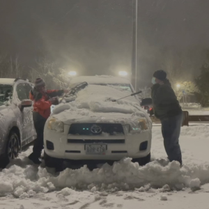 Boy, 10, and his friend clean snow off cars of hospital staff to say thank you