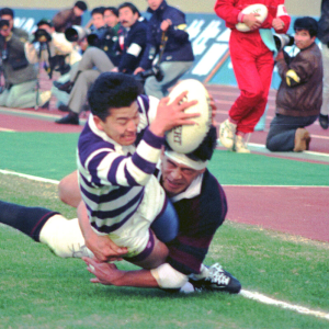 伝統の大学ラグビー早明戦は1日、対抗戦100回目を迎える。日本代表としても活躍した両校OBで当時、早大SHの堀越正己氏(56)と明大の快速ウィング吉田義人氏(55)による特別対談の「後編」は、お互いが4年生になった1991年1月1月6日の大学選手権決勝が舞台。激闘を振り返り、後輩たちに熱いエールを送った。(取材・構成・大谷翔太) * * * * * * 吉田氏(以下、吉)「高校時代は、早稲田が展開力があり華麗なプレーもする。僕がやりたいようなラグビーを国立の舞台でしているな、かっこいいなと思っていました。ただ、縁あって明治に入り、北島忠治(元)監督の指導を受けた。同期では、高校日本代表で一緒だった堀越君、今泉(清)君、そうそうたるBKの選手が早稲田に行って、『堀越がいいらしいぞ』とか聞こえてきていました。早稲田を意識している訳ではないけど、そうせざるを得ない状況に持ち込まれるというか…。早明戦の週は、周りがすごくざわつくんですね。テレビカメラが何十台も八幡山(東京・杉並区の明大グラウンド)に来る。『これはただ事じゃないな』と。別に誰かに言われるわけではないけど、学生スポーツの対抗戦の最後に国立競技場で試合が組まれるというのは、やっぱり特別。とにかく特別な試合なんだなということは、1年生ながらに感じていました」 堀越氏(以下、堀)「僕たちは『明治が宿敵だ』ということは先輩たちからも聞いていました。明治は(当時)19人がラグビー推薦で、しかも最低ラインが高校日本代表。一方、早稲田は『来る者拒まず、去る者追わず』でした。明治さんはご存じの通り『前へ』、我々は小さいBKで揺さぶって勝つという、ラグビーのスタイルも含めて対照的だった。大西鉄之祐(元監督)さんが、明治を体の大きな海外チーム、自分たちを小さな日本代表に見立てて、いかに小さいサイズで勝つかということをやっていたという話も聞いたことがあります。僕たちは(4年間の早明戦は)2勝2敗1分で、イーブン。そういう意味でも、他校との成績は覚えていないけど、明治との試合はおおよその得点も覚えているし、すごく印象に残っています」 両氏が在学中の早明は2勝1分2敗の互角。4年時は、主将としてそれぞれのチームを率いた。最後の対抗戦は24―24で引き分け、大学選手権決勝で明大が16―13で早大を下し全国制覇。対抗戦からつながるドラマが、そこにはあった。 吉「4年の時は対抗戦で決着できなくて、もう一度チャンスがあるとしたらお互い決勝に行くしかなかった。明治は、もう一回早稲田とやって決着をつける。その思いしかなかったですね」 堀「あの時、対抗戦では早稲田が勝ったつもり。明治は負けた感覚で。その思いの違いが、選手権で出たんじゃないかと、今になって思います」 90年12月の対抗戦。早大は、後半31分までに12―24とリードを許しながら、試合終盤に猛追して引き分けに持ち込んだ。追いついた早大は歓喜、追いつかれた明大は失望。選手権決勝でのみ再戦が可能だった明大の吉田主将は“雪辱”を誓っていた。 吉「大学選手権の準決勝で勝った後のインタビューでは『早稲田に勝ってほしい』と言っちゃった。(相手の)同志社さんには失礼だけど。でもそれだけ、早稲田に対して思いがあったんですね」 堀「もう、明治は怒ってるんですよ。リベンジだ、って。準決勝で(明治は)FWにけが人が出て最大のピンチが訪れるけど勝った。『待ってるから来いよ』っていう感じでした」 かくして両雄は、学生日本一を決める舞台でぶつかる。最大のハイライトは、明大が12―13で迎えた後半26分。センターライン付近右のラインアウトから、攻撃を展開。CTB元木由記雄からパスを受けた吉田が、一気に加速した。 吉「あの時、ボールを持った元木がハリーパスをしてくれたんです。元木は(相手との)間合いがなかったら突っ込んで相手をなぎ倒して、余裕があるときにパスをする。場面的に元木は自分で突破するところだったけど、パスしてくれて。自分の前がフリーでした」 左サイドを駆け上がる明大の主将。敵陣22メートルを前に、早大のFB今泉が迫ってきた。くしくも今泉は吉田にとって、引き分けた対抗戦で同点につながる80メートルの独走トライを許した相手。思いを胸に、必死に足を運んだ。 吉「対抗戦のラストプレー、僕は肉離れをしていて全然走れなくて。どうすることもできず、トライを決められてしまった。そういう思いもあって、心の中で『キヨシ、キヨシ』(今泉)と叫びながら外側で勝負しました。今泉は、今でも覚えてるって言うんですよ。『(タックルで)この指が、ここにかかった』って。僕は必死だったから覚えてないけど。そしてタッチラインギリギリを走っていたら、内側から(早大WTB)増保(輝則)がすっ飛んできた。ブレーキをかけて体を反転させた時に、明治のフォローが何人か見えたのでパスをしてもよかったんだけど…。なんだか分からないけど、そのまま行っちゃった。とにかく、今泉と勝負した時に『俺が行かないと