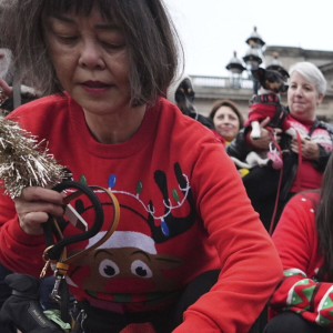 Pooches in pullovers strut their stuff at London’s canine Christmas sweater parade