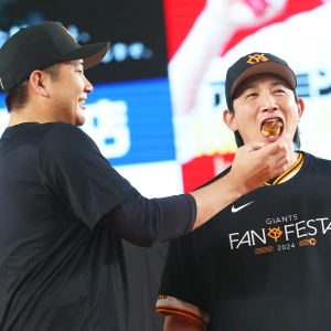 巨人から海外FA権を行使してメジャー移籍を目指す菅野智之投手(35)が30日、G党に感謝の思いを届けた。背番号18のユニホームでファンフェスタに参加し、「12年間、ファンの方の支えがあって成長できた。(巨人の)ユニホームを着るのはいったん最後にはなりますけど、ジャイアンツファンとして日本一を誰よりも祈っている。心の片隅でいいので、僕のことも応援していただけるとうれしい」と語った。 巨人の選手としてファンの前に立つのは最後。「考え始めたら、いろいろこみ上げてきちゃうので…」と言葉を詰まらせ、「ファンの皆さんの前に出るのも最後になると分かっていたので、しっかり自分ができるファンサービスをできた」と精いっぱいの感謝を示した。 同時間帯にジャイアンツTVで放送された「裏ファンフェスタ」には小林と登場。今季15勝を挙げた相棒とは7年ぶりのバッテリー賞に輝き、「一番うれしい。2人でひとつの賞なので。2人でロッカーで『やったね』と話しました」と感慨深げだった。小林からは「アメリカでも智之らしく自信を持って勝負してほしい」と声をかけられた菅野は、「一番の巨人ファンでジャイアンツがやっぱり大好き。日本一に来年なれることを心から祈ってますし、僕も頑張ろうと思う」。巨人で過ごした12年間を心のど真ん中に置き、ファンと仲間の期待を背負って海を渡る。(水上 智恵)