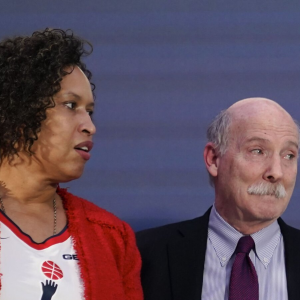 Ted Leonsis, right, owner of the Washington Wizards NBA basketball team and Washington Capitals NHL hockey team, speaks during a news conference with Washington DC Mayor Muriel Bowser, left, and…