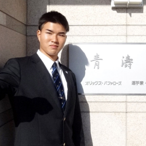 オリックスの新入団選手が30日、大阪・舞洲の球団施設を見学し、ドラフト3位・山口廉王(れお)投手(18)=仙台育英=は尊敬する山下と初対面した。193センチ、97キロの大型右腕は先輩の肩や胸の筋肉に「分厚さが違う。スイカがついてるんちゃうかと思うくらい、ビックリしました」と仰天した。 2位・寺西(日体大)と一緒にあいさつ。自身も肉体強化に励んできたが、4年間プロで鍛えた190センチ、100キロの体は次元が違った。ただ、入団時の山下は93キロ。「(球団施設は)すごいの一言。この環境でしっかり練習すれば、近づけるのでは」と意気込んだ。 「甲子園に出られなかったり、いろいろな思いもあるので」と、同世代への対抗心は強い。特に阪神2位の今朝丸(報徳学園)を意識。練習試合で親交を深め、連絡を取り合う仲だ。初対面は2年春。直前のセンバツ準々決勝で、仙台育英は報徳学園に敗れた。その大会で全国区になったライバルに対し、自身はベンチ外。そこから追う立場だが「意識する存在がいることで、いい意味で力が入る。この施設も見て、追いつけるチャンスはあると感じた」と“スイカボディー”を身につけて挑戦する。(安藤 理) ◆山口 廉王(やまぐち・れお)2006年5月14日、東京・大田区生まれ。18歳。田柄二小1年時に野球を始め、宮城・高崎中時代は宮城北部シニアでプレー。仙台育英では2年秋からベンチ入り。3年春から背番号1を背負ったが、甲子園出場なし。名前は手塚治虫の漫画「ジャングル大帝」の主人公が由来。最速151キロ。193センチ、97キロ。右投右打。背番号47。