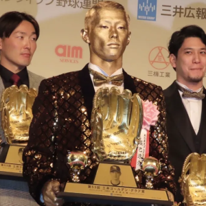 楽天・辰己涼介「約束通り」GG賞表彰式に全身ゴールド姿で登場! | ショウアップナイター