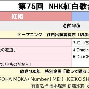 紅白歌合戦2024・タイムテーブル完全版(曲順・時間・順番・曲目・出演者一覧)
