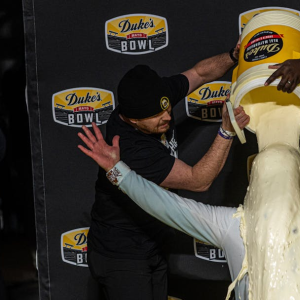CHARLOTTE, N.C. — Moments before being doused with a five-gallon tub of mayonnaise, Minnesota coach P.J. Fleck shouted “make it a double!” Then the 44-year-old coach strapped on a Duke’s…