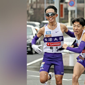 戸塚中継所でたすきをつなぐ駒大8区の安原海晴(左)と9区の村上響(3日)=鈴木竜三撮影 箱根駅伝は3日、復路が行われ、レースは9区(戸塚中継所~鶴見中継所=23・1キロ)に入った。 箱根駅伝の順位、リアルタイムでわかる「動くグラフ」 青山学院大は選手変更で入った主将・田中悠登(4年)が逃げ切りを図る。追う駒沢大も同じく変更となり、村上響(2年)が追う。2人は昨年11月の全日本でともに5区を走っており、田中が区間4位、村上が区間5位と好走している。復路のエース区間で結果を出すのはどちらか。 【経過】 7・7キロの権太坂、田中と村上が通過。その差は1分48秒で、戸塚中継所から9秒詰まった。 9・7キロ付近、昨年10月の出雲駅伝5区で区間賞を獲得し国学院大の5年ぶり2度目の優勝への流れを作った上原琉翔(3年)をかわし3位に浮上。チームは大学駅伝3冠の呼び声も高かっだけに意地を見せた形だ。 8位争いが激しい。東洋大・吉田周(4年)、日本体育大・山口廉(4年)、順天堂大・石岡大侑(3年)が集団で走っていたが、帝京大・小林大晟が迫り、13・3キロ付近で並ぶと前へ出た。同じ9区で前回区間3位の好走を見せた4年生の快走に、3人が必死に食らいつく。18・2キロ付近で日本体育大の山口が11位に後退。 20・2キロの生麦、青山学院大と駒沢大の差は2分5秒に拡大。 鶴見中継所、田中が笑顔で首位リレーを決めた。村上が苦しそうな表情で飛び込んできたが、青山学院大と駒大のタイム差は2分21秒に拡大した。 一方、国学院大・上原に異変。ペースが上がらない。早稲田大・石塚が最終盤で追いつき一歩早くリレー、3位を取り戻した。 ◆9区の区間記録 中村唯翔(22年・青山学院大)1時間7分15秒