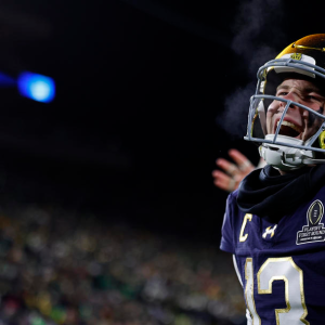 Riley Leonard and the Notre Dame Fighting Irish play the Georgia Bulldogs in the Sugar Bowl tonight. (Jeffrey Brown/Icon Sportswire via Getty Images) ESPN will be the place to watch…