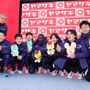 優勝し、記念撮影に笑顔を見せる旭化成。手前左から1区長嶋、2区茂木、3区葛西、4区キプルト、5区大六野、6区斎藤、7区井川。後方左は宗総監督(撮影・足立雅史) <全日本実業団対抗駅伝(ニューイヤー駅伝)>◇2025年1月1日◇群馬県庁前発着(7区間100キロ) 旭化成が4時間47分32秒で5年ぶりに王座を奪還した。史上最多記録を更新する26度目の優勝を収めた。 2年ぶり3度目の優勝を狙ったHonda(ホンダ)は8秒差の2位。前回王者のトヨタ自動車は3位だった。住友電工は過去最高の6位。富士通が8位に入り、同順位までが圏内となる入賞を果たした。 ◆ニューイヤー駅伝の総合順位(上位15チーム) 優勝 旭化成(4時間47分32秒) 2位 Honda(4時間47分40秒) 3位 トヨタ自動車(4時間48分36秒) 4位 GMOインターネットグループ(4時間50分33秒) 5位 SUBARU(4時間51分21秒) 6位 住友電工(4時間51分21秒) 7位 三菱重工(4時間51分48秒) 8位 富士通(4時間52分24秒) 9位 安川電機(4時間52分35秒) 10位 花王(4時間52分58秒) 11位 九電工(4時間53秒56秒) 12位 ロジスティード(4時間53分57秒) 13位 ヤクルト(4時間54分00秒) 14位 黒崎播磨(4時間54分05秒) 15位 JR東日本(4時間54分17秒)
