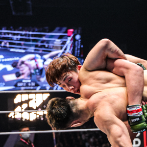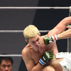 黒薔薇くんを巻き投げる安井飛馬 31日、さいたまスーパーアリーナにてRIZIN DECADE『雷神番外地』が開催。『朝倉未来軍vsBLACK ROSE軍』第2試合として[朝倉未来軍]安井飛馬vs[BLACK ROSE軍]黒薔薇くん(鈴木博昭)が行われた。 【タップアウトシリーズ】安井飛馬はBreakingDown第1回大会に出場し、朝倉未来にスカウトされ朝倉未来1年チャレンジ2期生へ。ブレイキングダウンMMA最強戦士としてDEEPに参戦し、『フューチャーキングトーナメント2023ライト級』優勝。その後もDEEPで連勝を続けている。 対する黒薔薇くんこと怪物くんは、SHOOT BOXINGで初代SB日本ライト級王座、第9代SB日本スーパーライト級王座、初代SB世界スーパーライト級王座を獲得し、ONEでも活躍したプロ格闘家。RIZINでは朝倉未来一年チャレンジ1期生の【朝倉一門 特攻隊長】西谷大成を1R56秒で葬っているが、今年11月に18歳でJAPAN TOP TEAMに所属し朝倉兄弟の弟子となった秋元強真に判定負けを喫していた。 試合は黒薔薇が打撃で攻めようとするが、安井がタックルからテイクダウンを奪う展開が続く。黒薔薇は下から蹴り上げて対応しようとするものの、安井は一度立ち上がりすぐに鉄槌。黒薔薇が立とうとすれば安井はすぐにフロントチョークで捕らえ、黒薔薇の動きを完封したまま3R終了。判定3-0で安井の勝利となった。 勝利した安井飛馬 安井は「『うわっ、格闘技しててよかった、このために生まれてきたんじゃないか』ってくらいドーパミンが出ました。ずっと中学生から見てた風景だったんで、『ここに来たんだ』っていう。こっちの席からの風景が見られて嬉しいです」と笑顔を見せ、ブレイキングダウンへの批判については「いろんな層の人が見てくれてるんで、良いコメントも悪いコメントも含めて今回すごい注目あったことが嬉しいですね。BreakingDownとしても、結構言ったら正統派みたいな選手だと思うんですけど、BreakingDownはいろんな選手もいるんで。全体的に注目度があって僕は嬉しかったです」とプロ格闘家として正統派なコメントを残した。 これで朝倉未来軍が2連勝。JTTの若手が結果を出し続けた。 バトル・ニュース ******* **************************************************************************** ******* ****************************************************************************