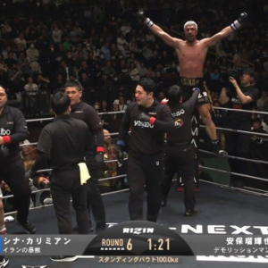 “反則王”がボクシングマッチでありえないバックブローを炸裂させたことで反則合戦に発展。制止するレフェリーにまで拳を振るう無法ぶりに会場からは大ブーイング。大荒れの喧嘩マッチにレフェリー6人が投入される前代未聞の事態となった。 【映像】一体、何が? 実際の様子 2024年12月31日(火)にさいたまスーパーアリーナで「RIZIN DECADE」雷神番外地が開催され、安保瑠輝也とシナ・カリミアンが対戦。6ラウンドを戦い3−0で安保が勝利も、最終ラウンドは反則連発の大荒れの展開で幕を閉じた。 朝倉未来率いるBreakingDown選抜メンバーと、平本蓮率いるBLACK ROSE選抜メンバーによる対抗戦「雷神番外地」。3−3で迎えた大将戦は元K-1 王者同士の対決に。朝倉軍に安保、そして元ボクサー、ライアン・ガルシアの欠場により問題児カリミアンがまさかの平本軍としての参戦した。 “100キロ契約”という漢気を通り越し無理難題のカード。安保にとって身長差約20cm、体重差16kg以上のカリミアンとの対戦は明らかに不利な試合だ。ボクシング対策で腕を磨いてきた安保が、2ラウンド、3ラウンドと完璧なコンビネーションを見せるが体格差のあるカリミアンには全く効かない様子。 「カモン、カモン」と煽るカリミアン。4ラウンドにも連打を貰うが”効いてないよ”と手を広げ完全に舐めた態度で「もっともっと!」と貰いっぱなし。自らサンドバッグとなり耐久性をアピールするも肝心の自分のパンチが出て来ず空振り状態の完全に”口だけ大王”もはや「手数より口数」状態だ。 6ラウンド、ボクシングマッチでカリミアンがバックブローを放ち”反則王”が本性を現すと安保も反則のバックブローで応戦。一気にヒートアップしたカリミアンが割って入るレフェリーを殴る前代未聞の事態も。あまりの状況に控えのレフェリー6人で二人を制止する異常事態に発展する。 こうなると両者止まらない。安保に「減点1」注意が出て試合再開されると、カリミアンは再び禁止のバックブローで会場は大ブーイング。これで両選手に「減点1」。試合は手数で勝った安保の勝利となったが、観客の拍手は重量級のパンチ3発を被弾しながらも試合を成立させたレフェリーにのみ注がれていた。