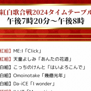 【紅白歌合戦タイムテーブル】出演者が歌う曲順、見逃し配信は