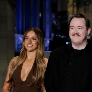 SATURDAY NIGHT LIVE — Episode 1877 — Pictured: (l-r) Musical guest Tate McRae, host Shane Gillis, … [+] and Jane Wickline during Promos on Thursday, February 27, 2025 Rosalind O’Connor/NBC…