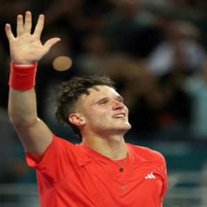Czech teen Jakub Mensik celebrates after defeating Novak Djokovic of Serbia to win the Miami Open ATP Masters title (AL BELLO) Czech teenager Jakub Mensik upset Novak Djokovic 7-6 (7/4),…