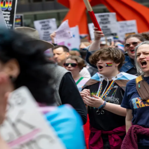 Nearly 1,000 people pour into Federal Plaza to show support for transgender people amid attacks