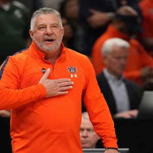 Auburn Tigers head coach Bruce Pearl during the second half in the South Regional final of the 2025 NCAA tournament against the Michigan State Spartans. / Dale Zanine-Imagn Images The…