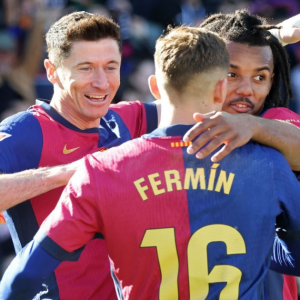 Barcelona beat visitors Girona 4-1 in the Catalan derby on Sunday after Robert Lewandowski netted twice in the second half to leave Hansi Flick’s side three points clear at the…