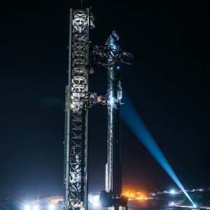 SpaceX’s fully integrated Starship rocket is illuminated at Starbase following stacking operations on Sunday, March 2, 2025. It will launch the Flight 8 suborbital mission. Image: SpaceX SpaceX is preparing…