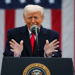 U.S. President Donald Trump gestures as he delivers remarks on tariffs in the Rose Garden at the White House in Washington, D.C., U.S., April 2, 2025. Psychologist Carl Jung believed…