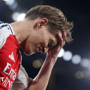 Image source, Getty Images Image caption, Martin Odegaard puts his head in his hands on a frustrating night Arsenal were beaten 1-0 by Paris St-Germain in the Champions League semi-final…