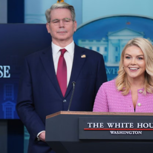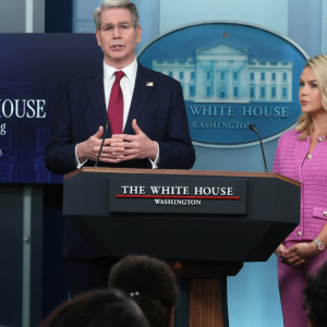 Item 1 of 2 U.S. Treasury Secretary Scott Bessent responds to questions with White House press secretary Karoline Leavitt during a press briefing at the White House in Washington, U.S.,…