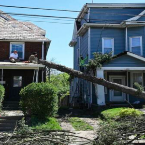 Kristina Serafini | TribLive Crews work to remove a large tree that toppled along Aurelius Street in Swissvale in Tuesday evening’s severe storms as seen Wednesday, April 30, 2025. Kristina…