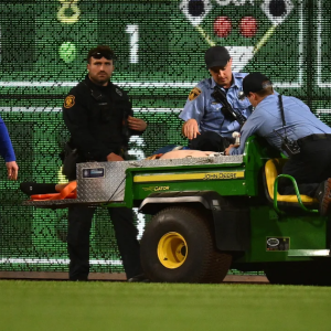 A fan is carted off after falling onto the field at PNC Park on April 30. Photo: Joe Sargent/Getty A baseball fan was hospitalized after falling from the stands above…