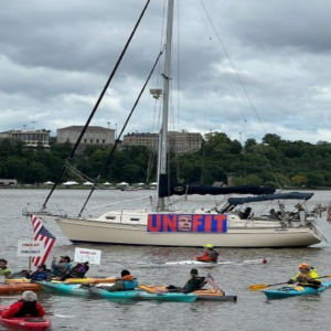 Demonstrators surround West Point on land and water
