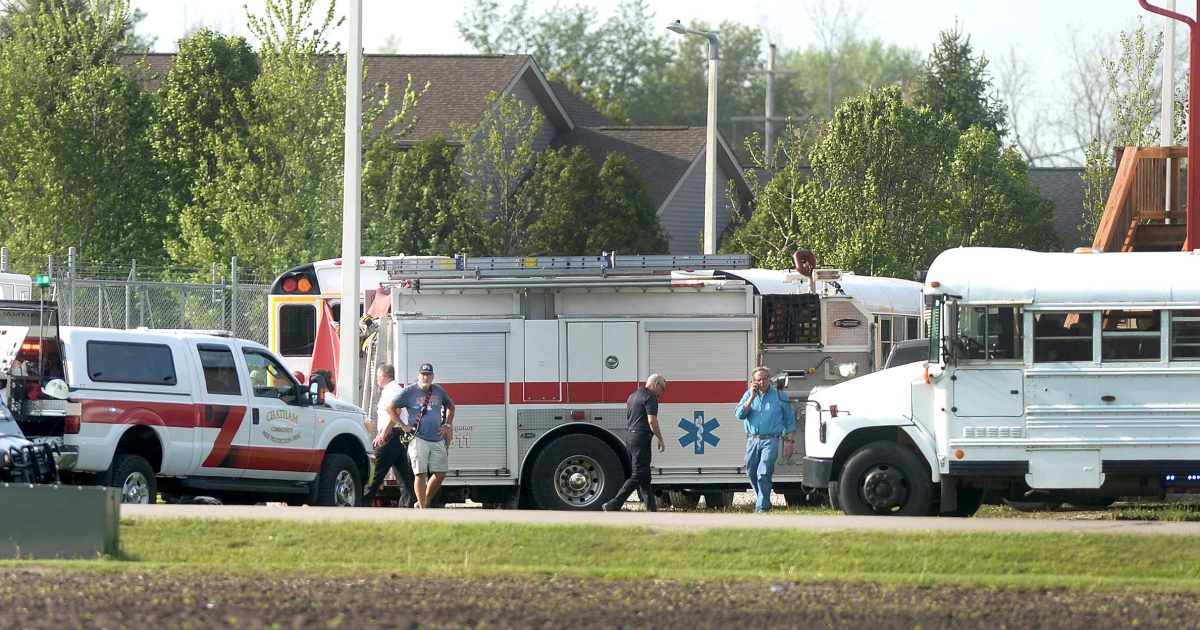 Emergency vehicles and personnel outside of YNOT Outdoors, an after-school program, in Chatham, Ill., on Monday. Thomas J. Turney / The State Journal-Register/USA Today Network via Imagn
