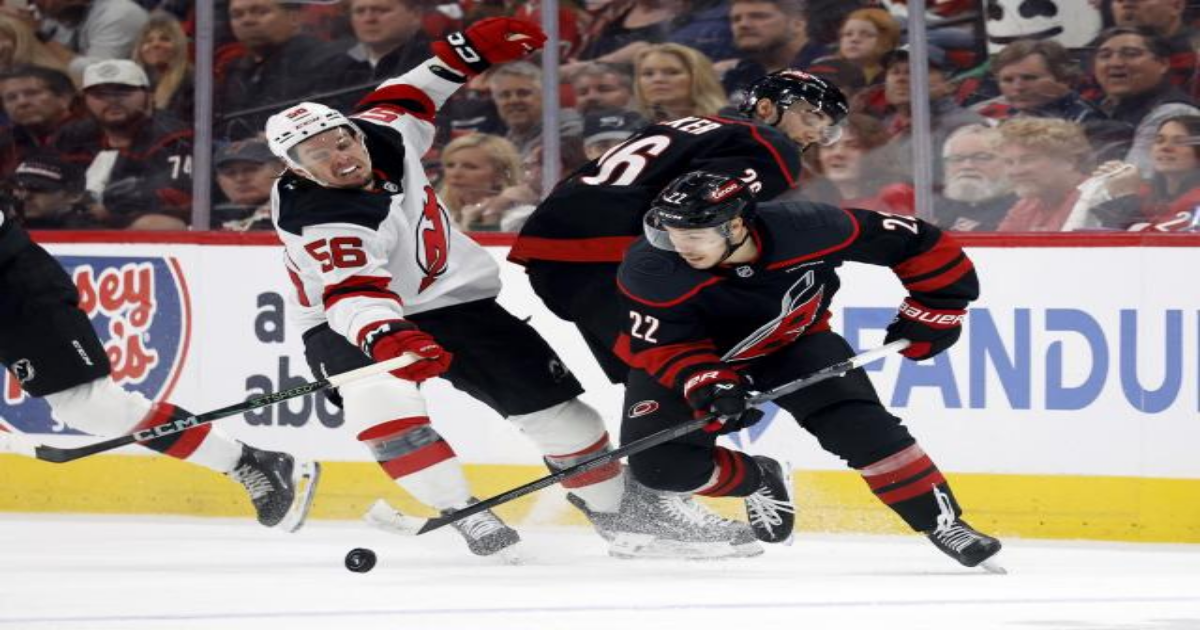 The Hurricanes had won the first two games of this series at home, while the Devils punched through in two overtimes to win Game 3. But Carolina put New Jersey on the brink with Sunday’s Game 4 win after taking a 3-0 lead and losing starting goalie Frederik Andersen to an injury on a skating-in hit by Timo Meier.
