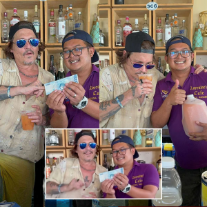 Johnny Depp Happily Samples a Drink Behind the Bar While Visiting a Restaurant in the Bahamas