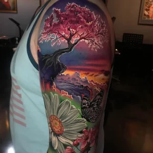 If you need a ᴅʀᴀᴍᴀᴛɪᴄ tattoo, choosing a partial chest piece that turns into a half sleeve tattoo (or whole cherry blossom sleeve tattoo) is a great option. This one is rife with…