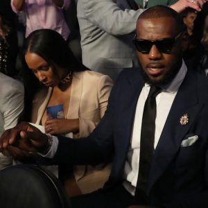 LAS VEGAS, NV – AUGUST 26: NBA player Lebron James and wife Savannah Brinson attends the super welterweight boxing match between Floyd Mayweather Jr. and Conor McGregor on August 26,…
