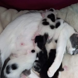 A feline found her way to a rescue center seeking assistance. After a few days, she gave birth to a litter of six adorable kittens. Best Friends Felines, a cat…