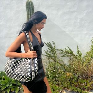 Dua Lipa Wore a Leather Halter-Neck Dress With the Coolest Studded Tote Bag