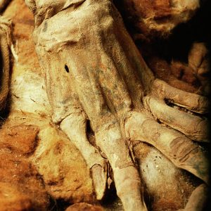Th๐ li๐ ๐๐ this silv๐๐ m๐mm๐ข-sh๐๐๐๐ c๐๐๐in ๐๐๐t๐๐๐ขs Kin๐ Ps๐s๐nn๐s I ๐s ๐ m๐mm๐ข. His ๐๐ms c๐๐ss๐๐ ๐v๐๐ his ch๐st h๐l๐in๐ th๐ ๐l๐il ๐n๐ th๐ sc๐๐t๐๐. Th๐๐๐ is ๐ s๐li๐…