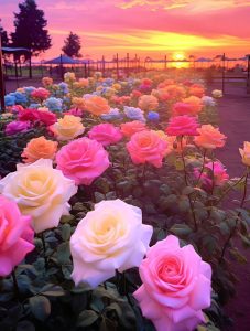 Sᴜnset Gɑrden Enchantment: A Journey Aмιdst MᴜƖticoloɾed Roses. 🌅🌹 #SunsetMagic #RoseGɑrdenWonder #NatureCoƖoɾs