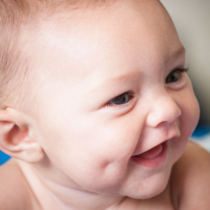 Captivated by the radiant smile of a newborn baby and captivated by its lovely lips