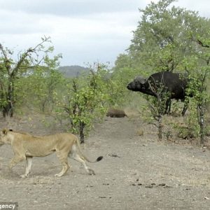 Los leones se involucran en la caza de cachorros, lo que provocó que las madres búfalos tomaran represalias atacando a un grupo de 14 leones para proteger a sus crías.