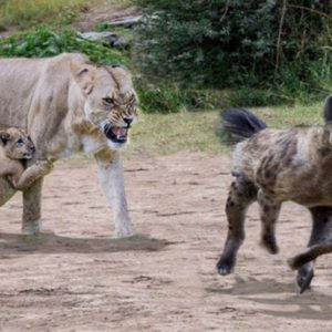 Aprovechando el momento en que la madre leona está lejos de sus cachorros, la hiena se acerca rápidamente a esta deliciosa presa sin saber nada, ni prestar atención a su…