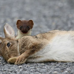 Comadreja vence a conejo cinco veces su tamaño con un mordisco fatal.
