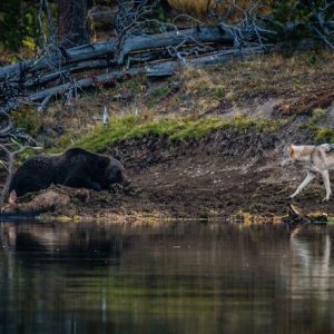 Fotógrafo documenta el encuentro único en la vida entre un oso pardo y un lobo Share Like Dislike.