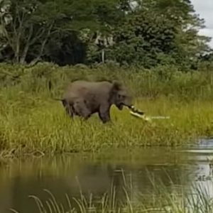 Pisotea a un cocodrilo para salvar a un elefante bebé.