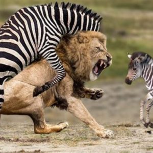 La caza termina en humillación cuando el rey león es mordido dolorosamente por una cebra macho mientras cazaba solo