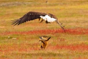 Momento Inolvidable de la Vida Silvestre Capturado: Águila y Zorro Luchando por un Conejo en una Épica Batalla Aviar