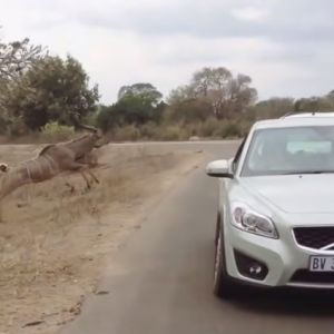 Mira el video para presenciar el increíble salto sobre los autos en movimiento para evadir la persecución del león.