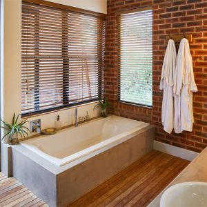 Brick wall house design next to a hill must show simplicity.