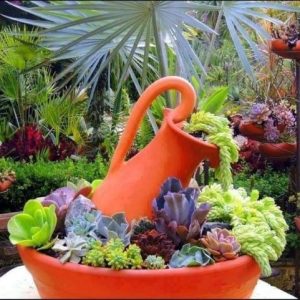 Beautiful DIY Ideas for outdoor decorations with old teapots or jugs